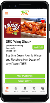 The EAT OUT app allows YOU to save money and time by finding Great Deals at Local Restaurants as well as every other type of business in town!