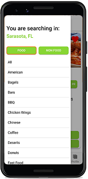 | Or if you are in the mood for FOOD,simply choose the type of food you want and view the deals in that category!